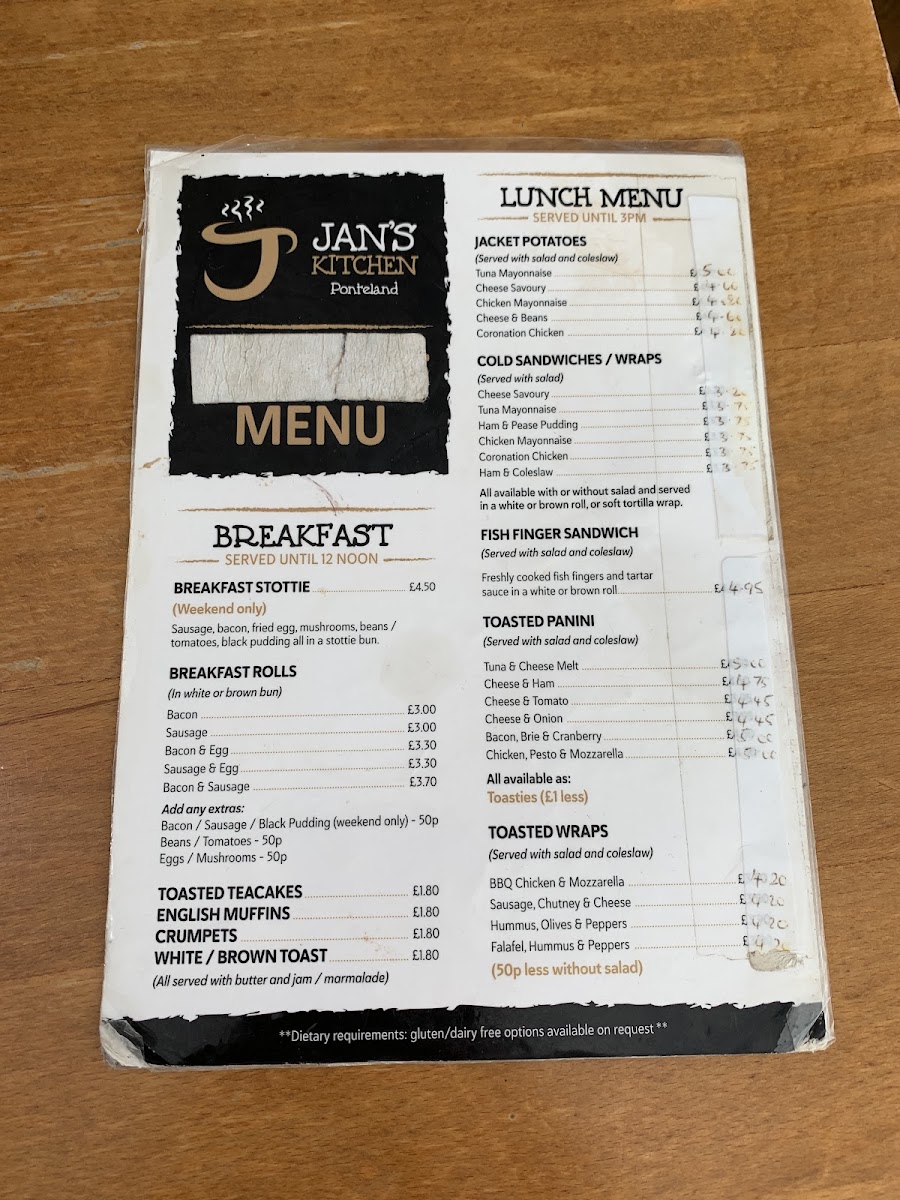Welcome to Jan's Kitchen, nestled in the heart of Ponteland, Newcastle upon Tyne. This cozy eatery offers a delightful menu that caters to both breakfast enthusiasts and lunch seekers. Start your day with their hearty Sausage Sandwich or a classic Bacon & Sausage combo. For lunch, indulge in options like the Piri Piri Chicken Wrap, Cheese & Ham Panini, or lighter selections like Hummus, Olives & Peppers and Falafel wraps.